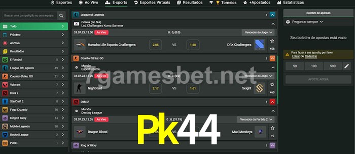 O Pk44 oferece uma grande seleção de opções de apostas em e-sports com probabilidades competitivas